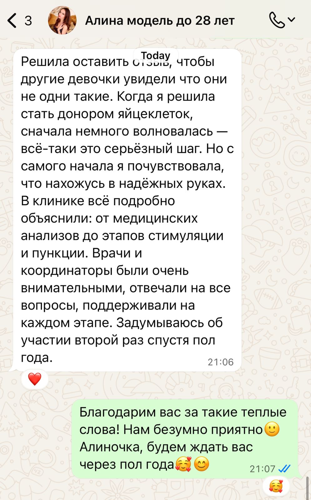 Осложнения случаются крайне редко, на нашей практике такого еще не было. Все риски минимальны и заранее обсуждаются с врачом. Мы всегда на связи и поддерживаем тебя на любом этапе.